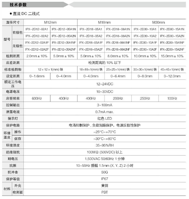 詳細信息 IPX-D12-06E1N,IPX-D18-08E1N,IPX-D30-10E1,IPX-2D12-02A1F,IPX-2D18-08A1NF,Koino圓柱形接近開(kāi)關(guān)