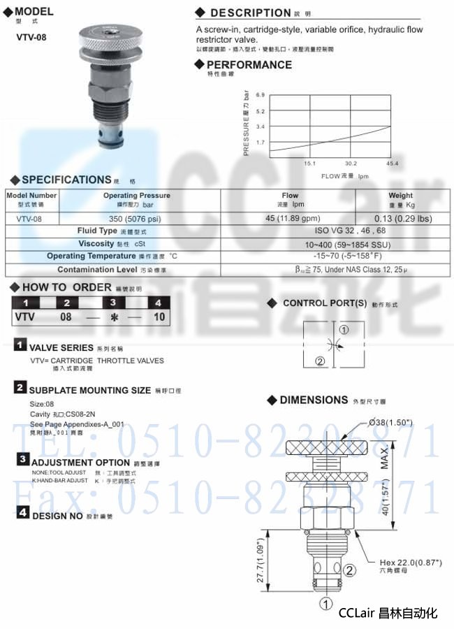 VTV-08,插入式節流閥,