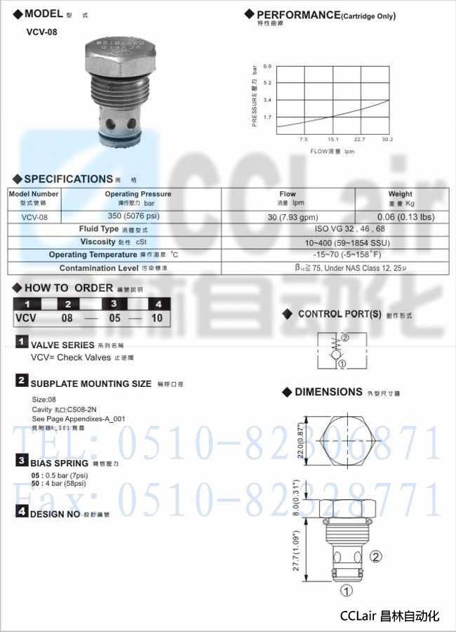 VCV-08,插入式止逆閥,