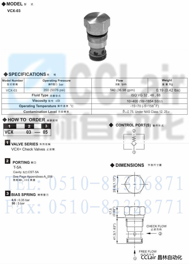 VCX-03,插入式止逆閥