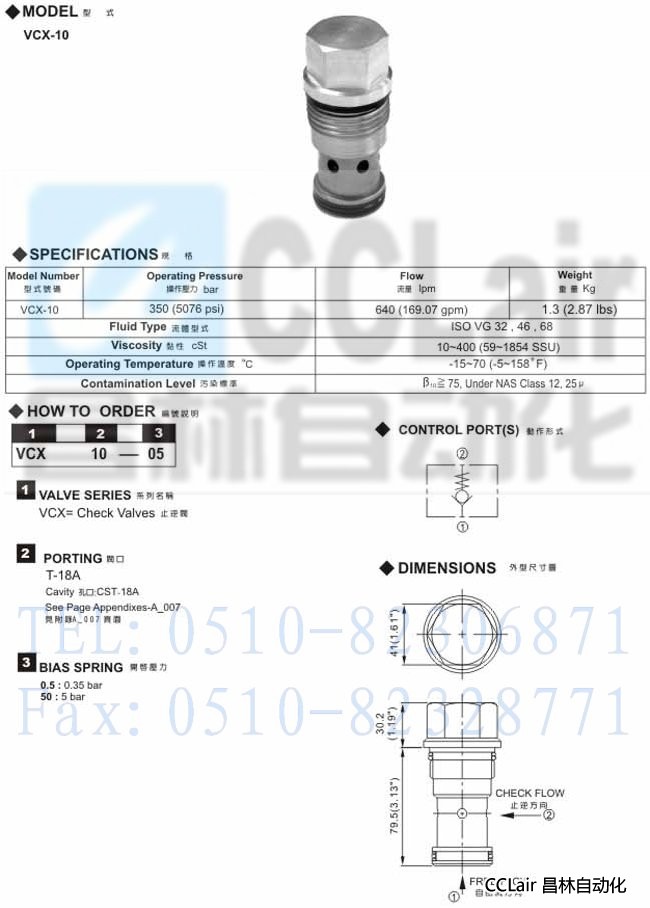 VCX-10,插入式止逆閥,
