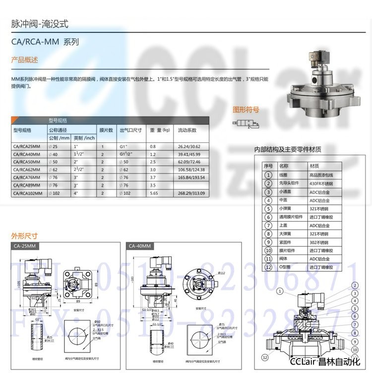 CA/RCA25MM,CA/RCA40MM,CA/RCA50MM,淹沒(méi)式脈沖閥