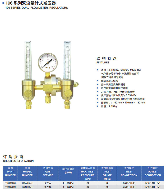 詳細信息 196A-25L-H,196N-30L-H,雙流量計式減壓器