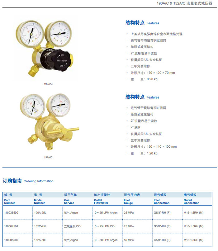 詳細信息 152C-25L,152A-50L,流量表式減壓器