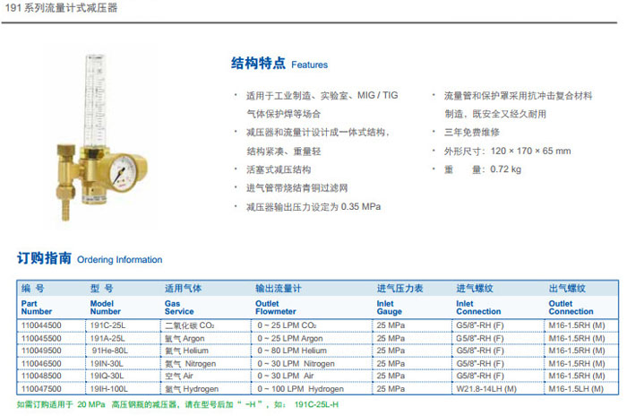 191C-25L,191A-25L,91He-80L,19IN-30L,19IQ-30L,19IH-100L,流量計式減壓器