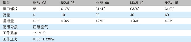 NKAM系列單向閥用于工作溫度-5℃~60℃、介質(zhì)為經(jīng)過(guò)濾、干燥后的清潔空氣、工作壓力0.05~1.2MPa。