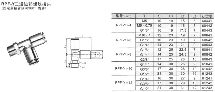 RPF-Y4,RPF-Y6,RPF-Y8,RPF-Y10,RPF-Y12,三通邊部螺紋接頭