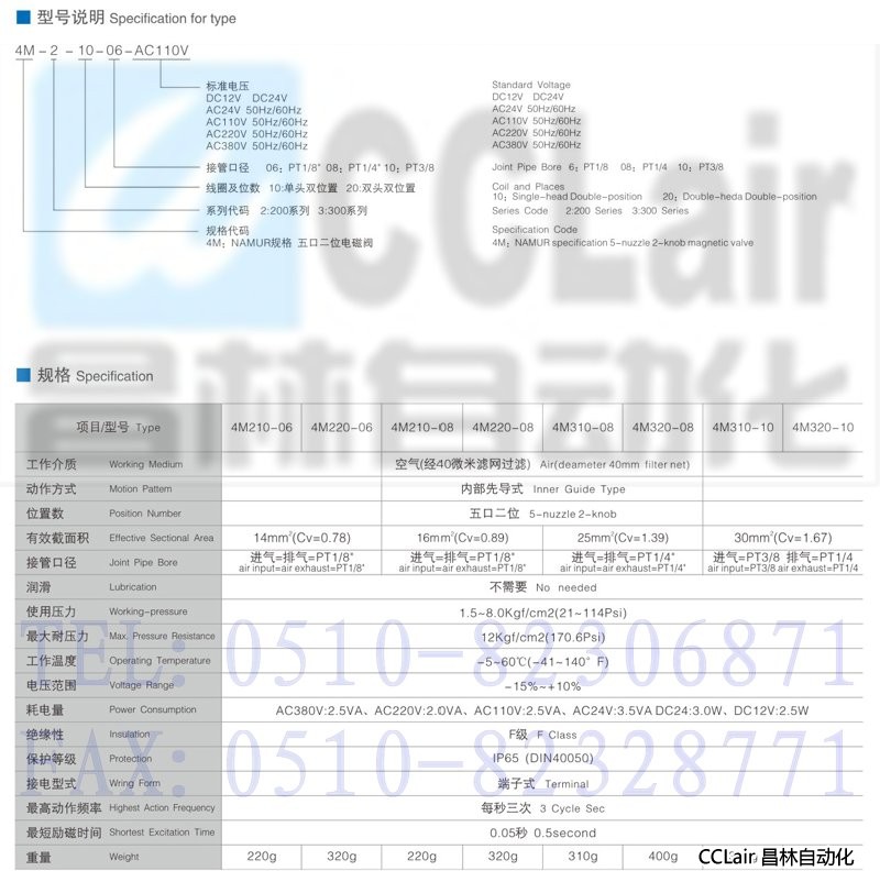 4M210-06,4M220-06,4M210-08,4M220-08,五口二位電磁閥