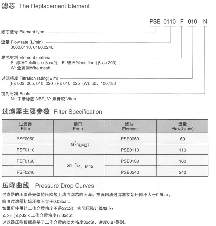 PSE0060,PSE0110,PSE0160,PSE0240,PSE0060F002NB12,PSE0060F002N,PSE0110W040N,旋裝型低壓過(guò)濾器濾芯