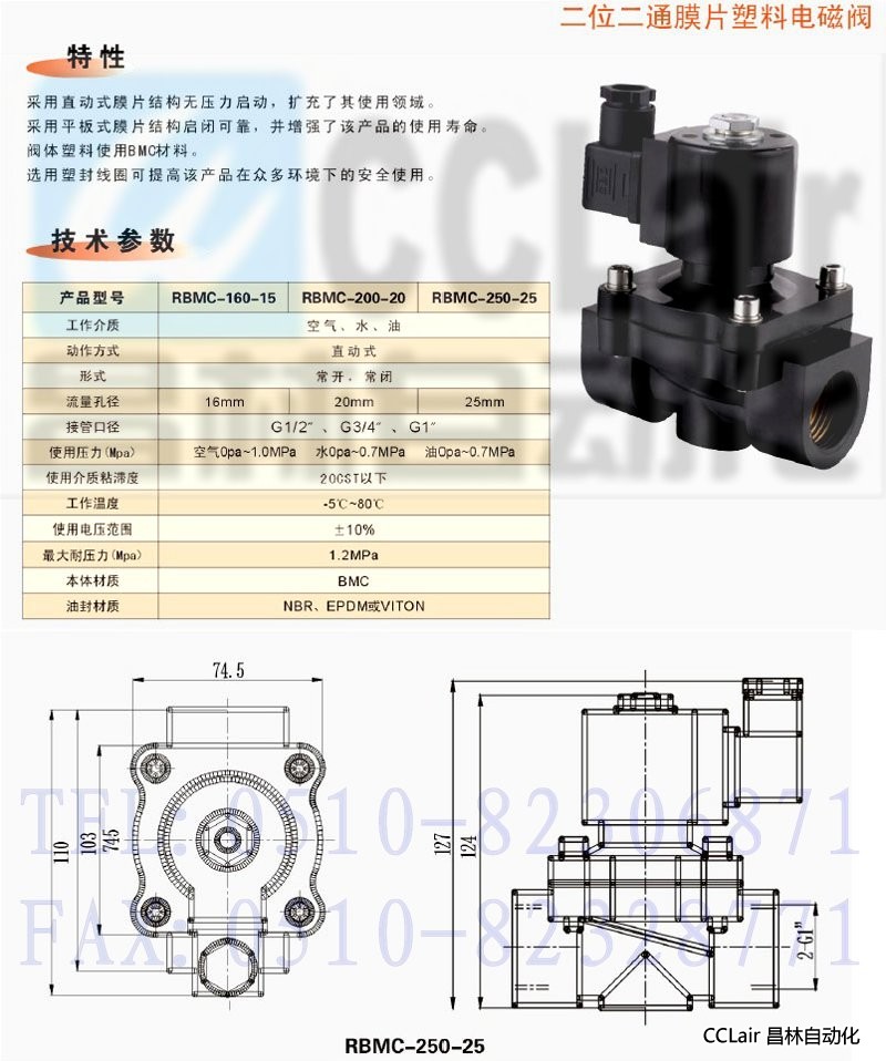 RBMC-160-15,RBMC-200-20,RBMC-250-25,二位二通塑料膜片電磁閥