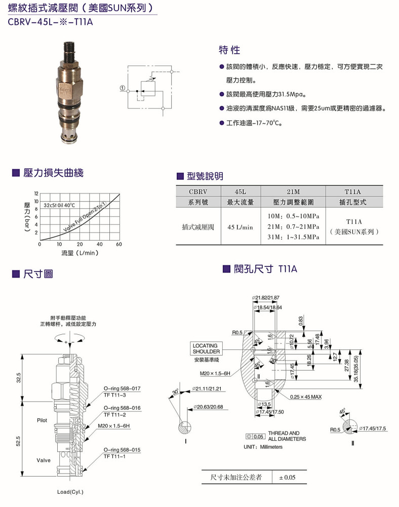 CBRV-140L-10M-T17A,CBRV-140L-21M-T17A,CBRV-140L-31M-T17A,螺紋插式減壓閥