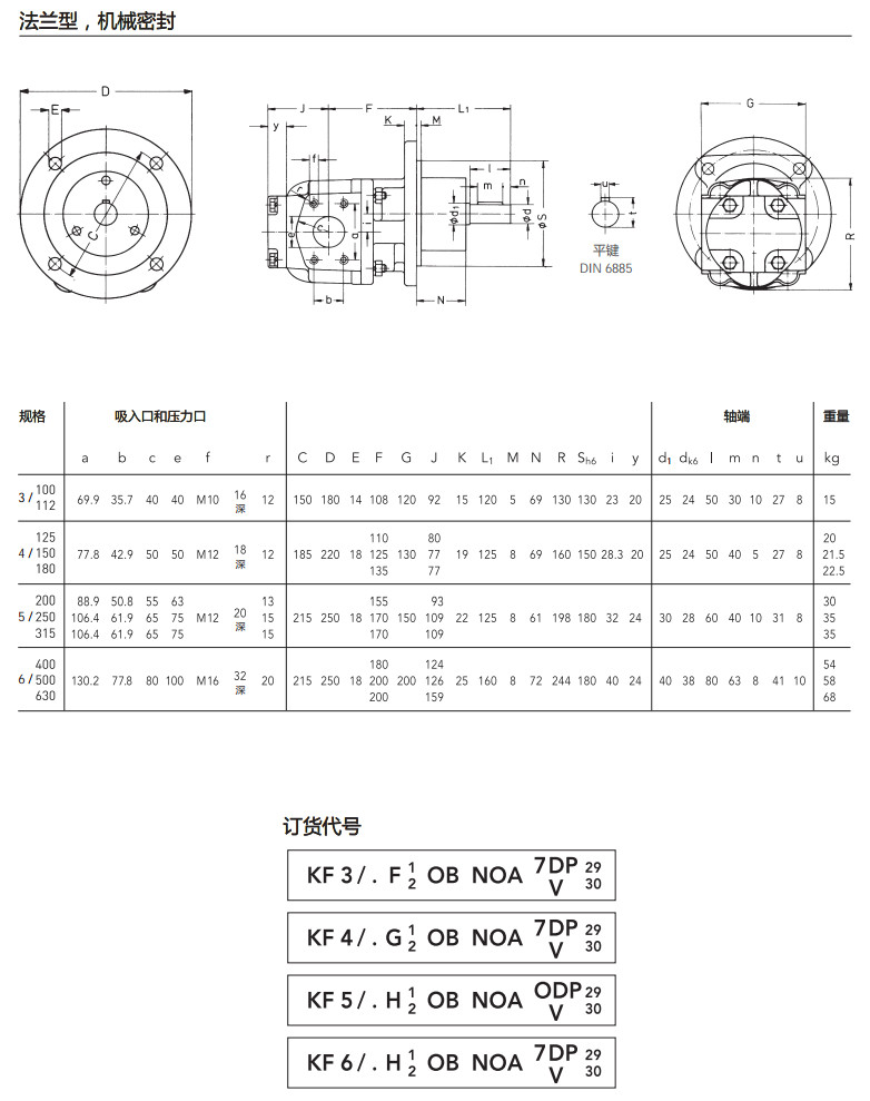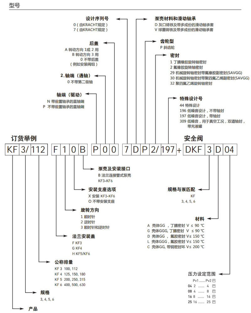 KF3/100,KF3/112,KF4/125,KF4/150,KF4/180,KF5/200,KF5/250,KF5/315,KF6/400,KF6/500,KF6/630, kracht齒輪輸送泵
