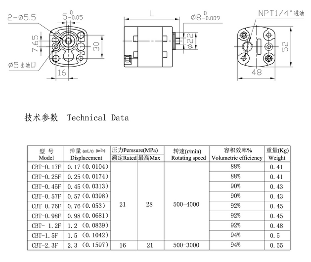 詳細信息 CBT-0.17F,CBT-0.25F,CBT-0.45F,CBT-0.57F,CBT-0.76F,CBT-0.98F,CBT-1.2F,CBT-1.5F,CBT-2.3F,齒輪泵