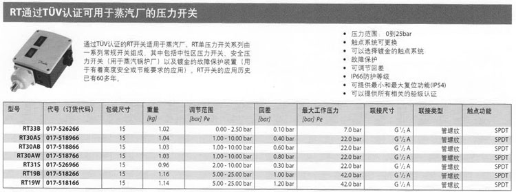 RT33B,RT30AS,RT30AB,RT30AW,RT31S,RT19B,RT19W,壓力開(kāi)關(guān)