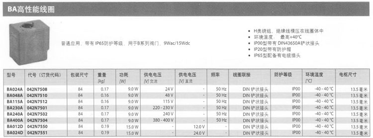 BA024A,BA048A,BA115A,BA230A,BA240A,BA400A,BA012D,BA024D,電磁閥線(xiàn)圈