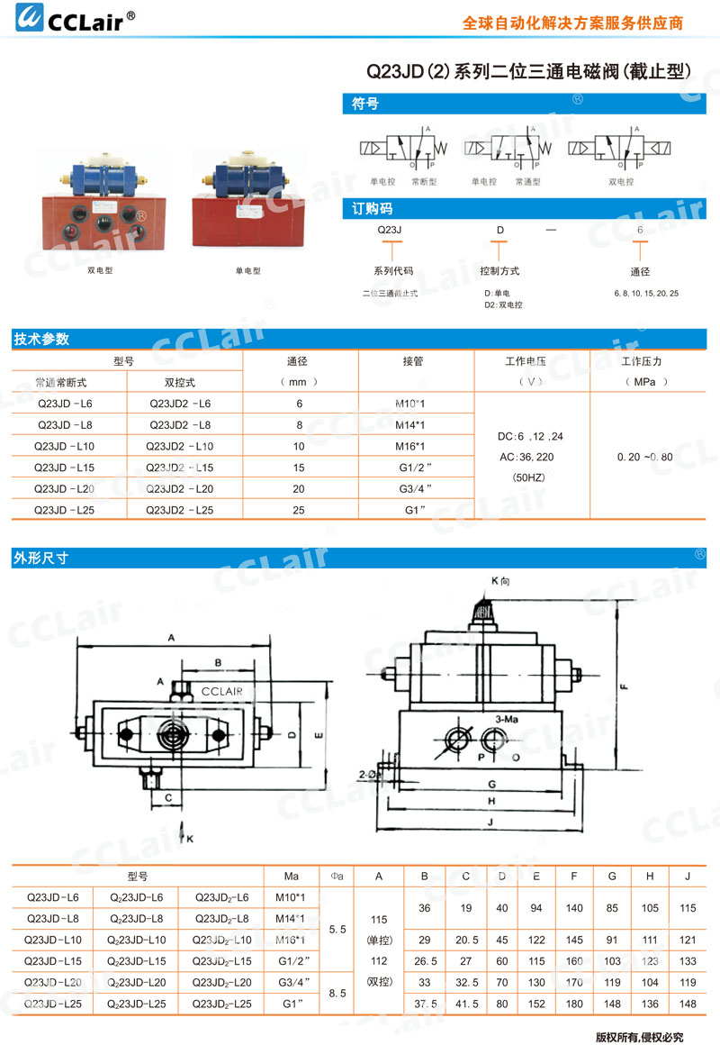 Q23JD-L6,Q23JD-L8,Q23JD-L10,Q23JD-L15,Q23JD2-L20,Q23JD2-L25,Q223JD-L6,Q223JD-L8,二位三通電磁閥