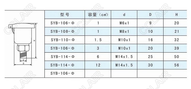 詳細信息 SYB-106-Φ,SYB-108-Φ,SYB-110-Φ,SYB-114-Φ,彈簧蓋式油杯