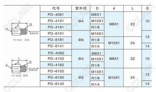 PD-4081,PD-4101,PD-4181,PD-6101,PD-6181,PD-6141,PD-4082,PD-4102,PD-6142,單向直通接頭