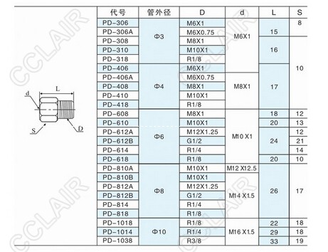 詳細信息 PD-306,PD-306A,PD-308,PD-310,PD-318,PD-406,PD-406A,PD-408,PD-410,PD-1038,直通接頭03