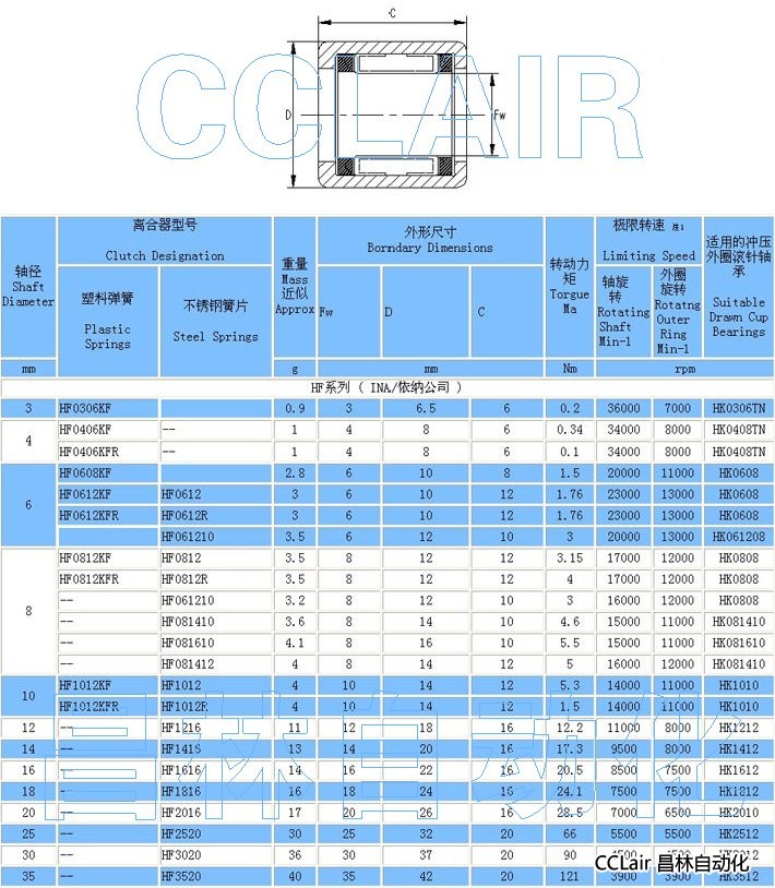 詳細信息 HF0306KF,HF0406KF,HF0406KFR,HF0608KF,HF0612KF,HF0612KFR,HF0612,HF0612R,單向軸承