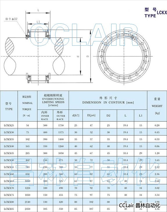 LCKX25,LCKX30,LCKX35,LCKX40,LCKC45LCKX50,LCKX55,LCKX60,LCKX65,單向離合器