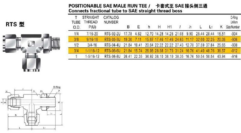 詳細信息 RTS-02-2U,RTS-03-3U,RTS-04-4U,RTS-06-6U,RTS-08-8U,接頭側三通接頭