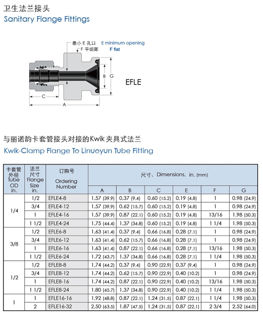 詳細信息 EFLE4-8,EFLE4-12,EFLE6-24,EFLE8-8,EFLE8-12,EFLE16-16,EFLE16-32,衛生法蘭接頭