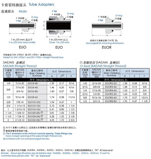 詳細信息 EUO4-4U,EUO6,EUO8,EUO10,EUO20,EUO32,EUOR2,EUOR3,EUOR4,EUOR5,EUOR6,直通外絲卡套接頭