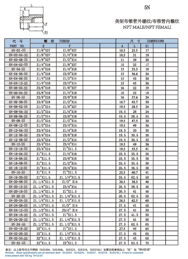 瀏覽次數:6435N-02-SS,5N-04,5N-06,5N-08,5N-12,5N-16,5N-20,5N-24,5N-32,直通內外絲接頭 |