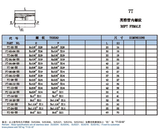 7T-02-SS,7T-04,7T-06,7T-08,7T-12,7T-16,7T-20,7T-24,7T-32,直通內絲接頭