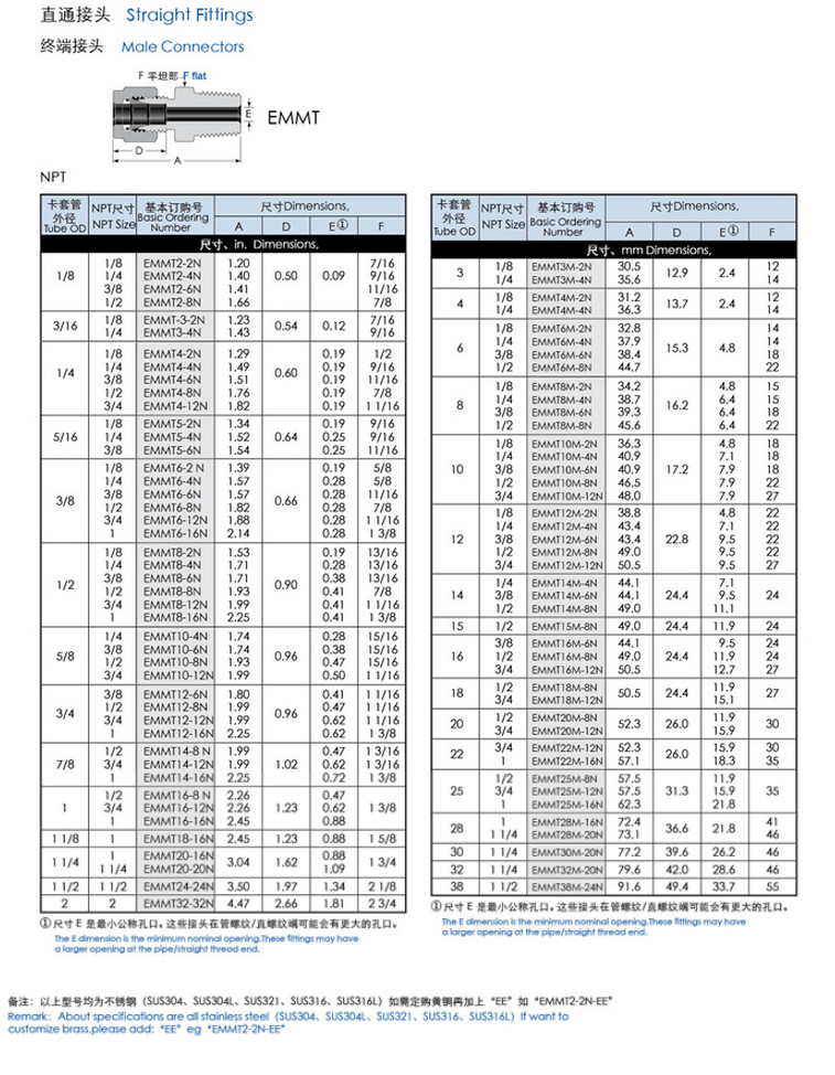 EMMT2-2N,EMMT3,EMMT4,EMMT5,EMMT6,EMMT8,EMMT10,EMMT12,EMMT20,直通終端卡套接頭