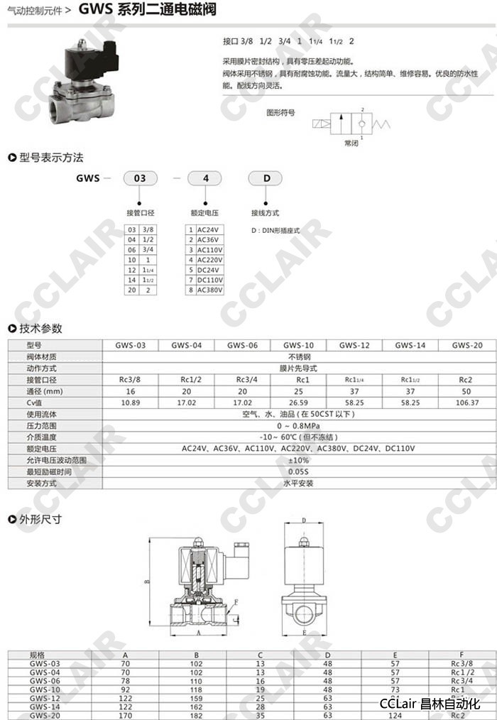 詳細信息 GWS-03,GWS-04,GWS-06,GWS-10,GWS-12,GWS-14,GWS-20,二通電磁閥