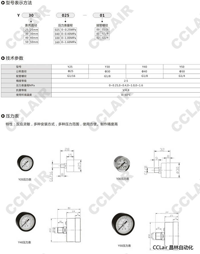 詳細信息 Y25-100,Y30-100,Y40-100,Y50-100,Y25-160,Y30-160,Y40-160,Y50-160減壓閥用壓力表