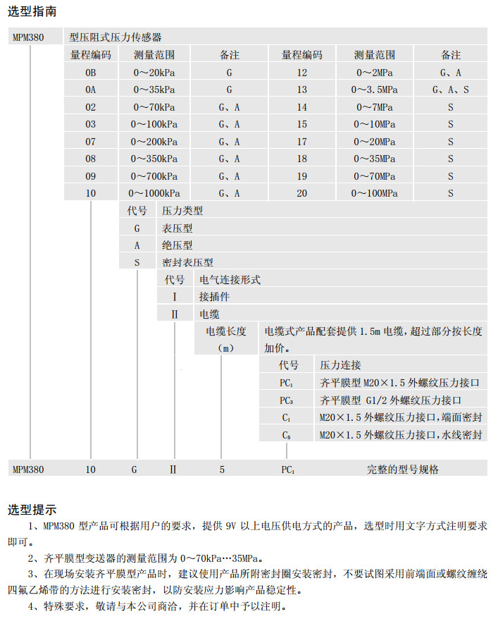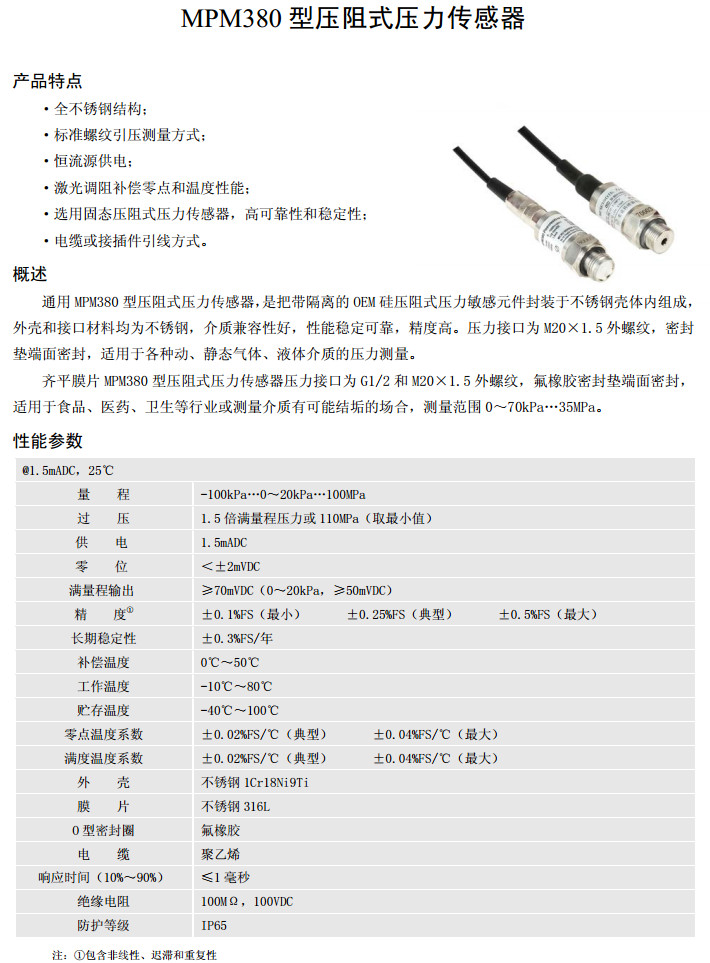 MPM380-OBG,MPM380-OAG,MPM380-02A,MPM380-03A,MPM380-07S,MPM380-08S,壓阻式壓力傳感器