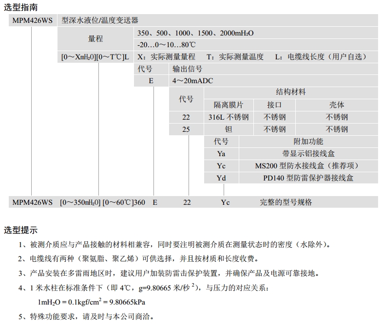 MPM426WS-350,MPM426WS-500,MPM426WS-1000,MPM426WS-1500,MPM426WS-2000,變送器