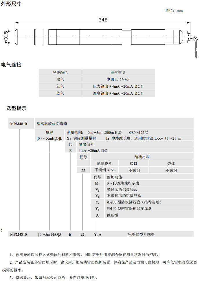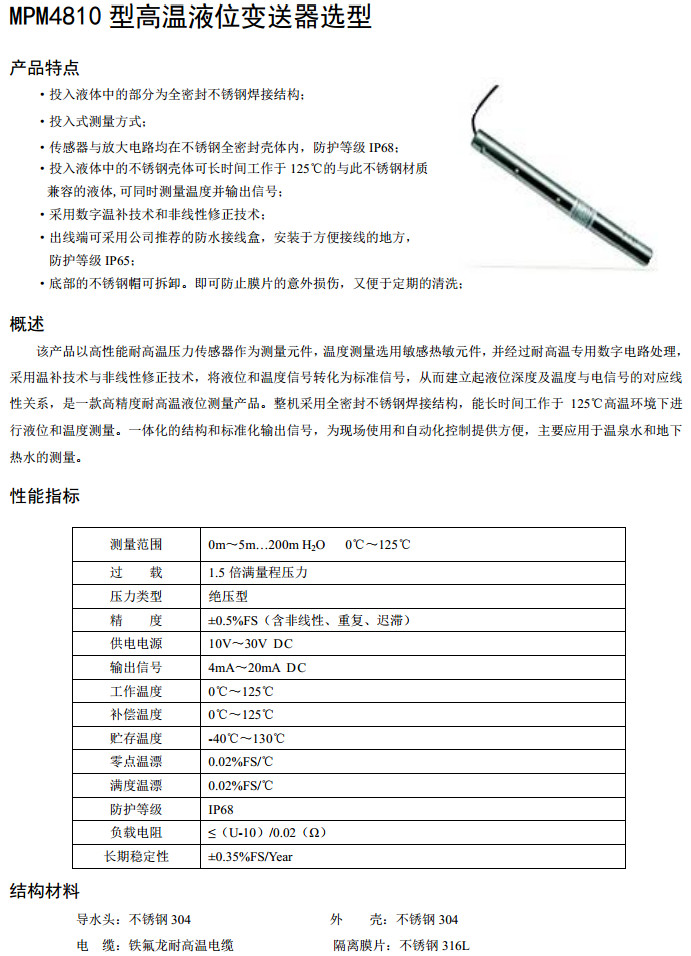 詳細信息 MPM4810-0,MPM4810-5,高溫液位變送器