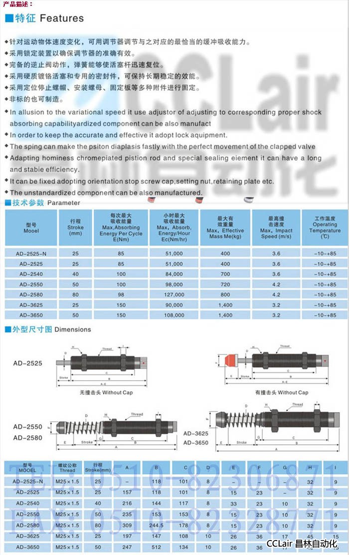 詳細信息 AD-2525-N,AD-2525,AD-2540,AD-2550,AD-2580,AD-3625,AD-3650,油壓緩沖器