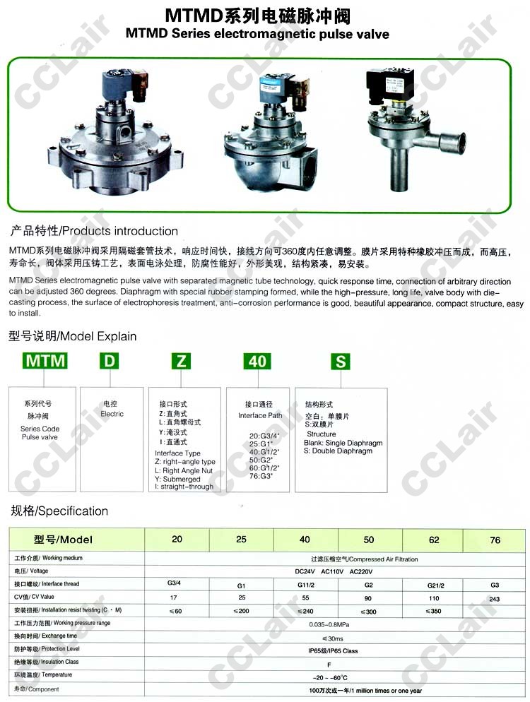 MTMD-Z-20,MTMD-Z-25,MTMD-Z-40,MTMD-Z-50,MTMD-Z-62,MTMD-Z-76,MTMD-Z-20S,電磁脈沖閥