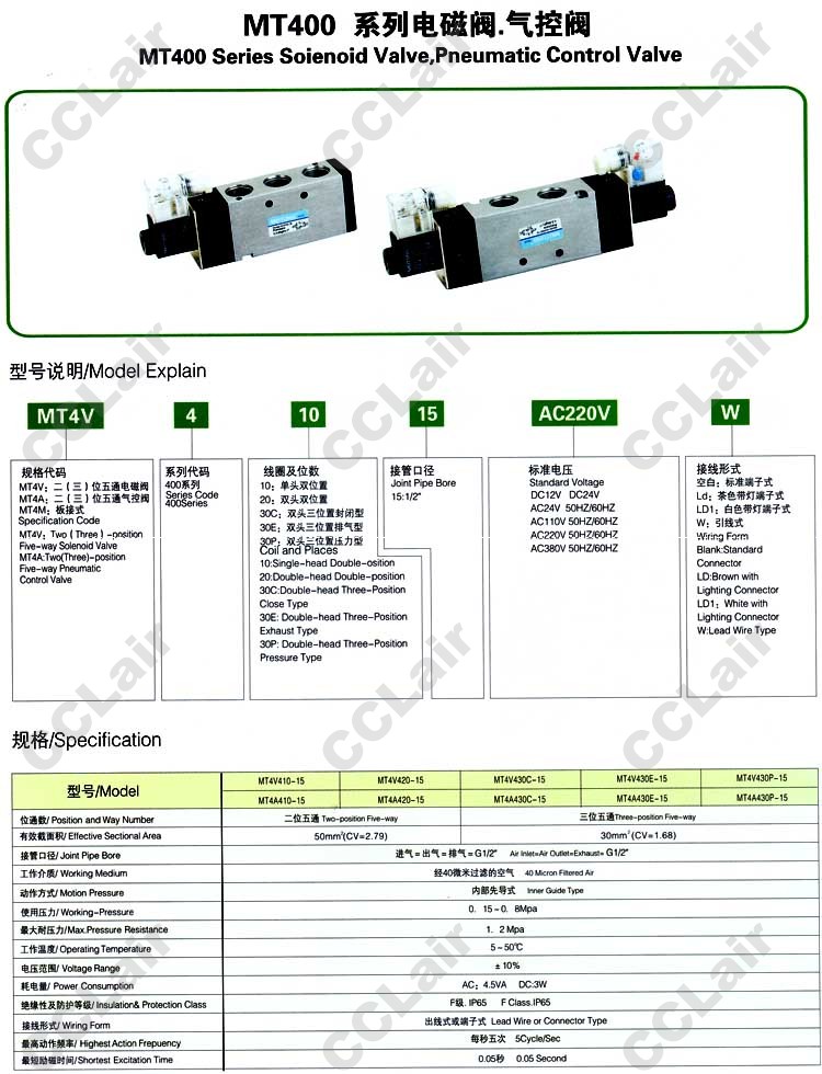 詳細信息 MT4A410,MT4A420,MT4A430C,MT4A430E,MT4A430P,MT4A430P-15-AC380V,氣控閥