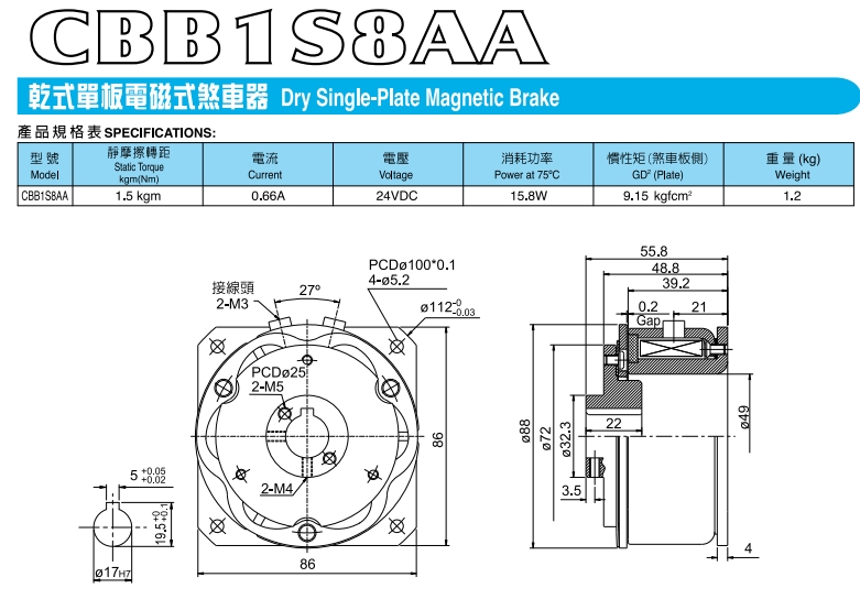詳細信息 CBB1S8AA,車(chē)床電磁制動(dòng)器