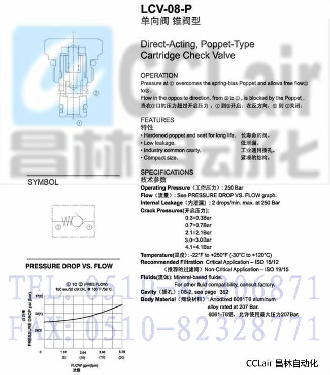 LCV-08-P-3.0,LCV-08-P-4.1,LCV-08-P-6.9,錐閥型單向閥,