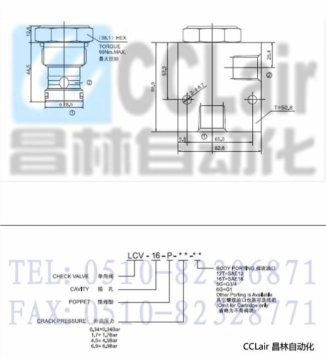 LCV-16-P-0.34,LCV-16-P-1.7,LCV-16-P-4.5,LCV-16-P-6.9,錐閥型單向閥,
