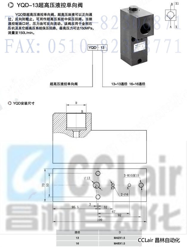 YQD13, YQD16, 超高壓液控單向閥