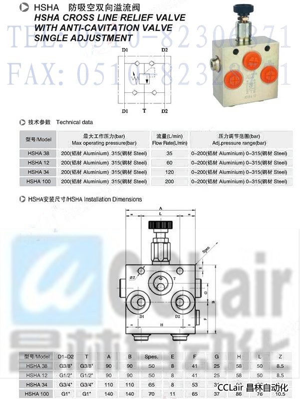 詳細信息 HSHA 38,HSHA 12,HSHA 34,HSHA 100,防吸空雙向溢流閥