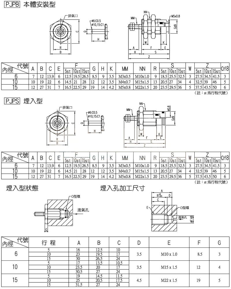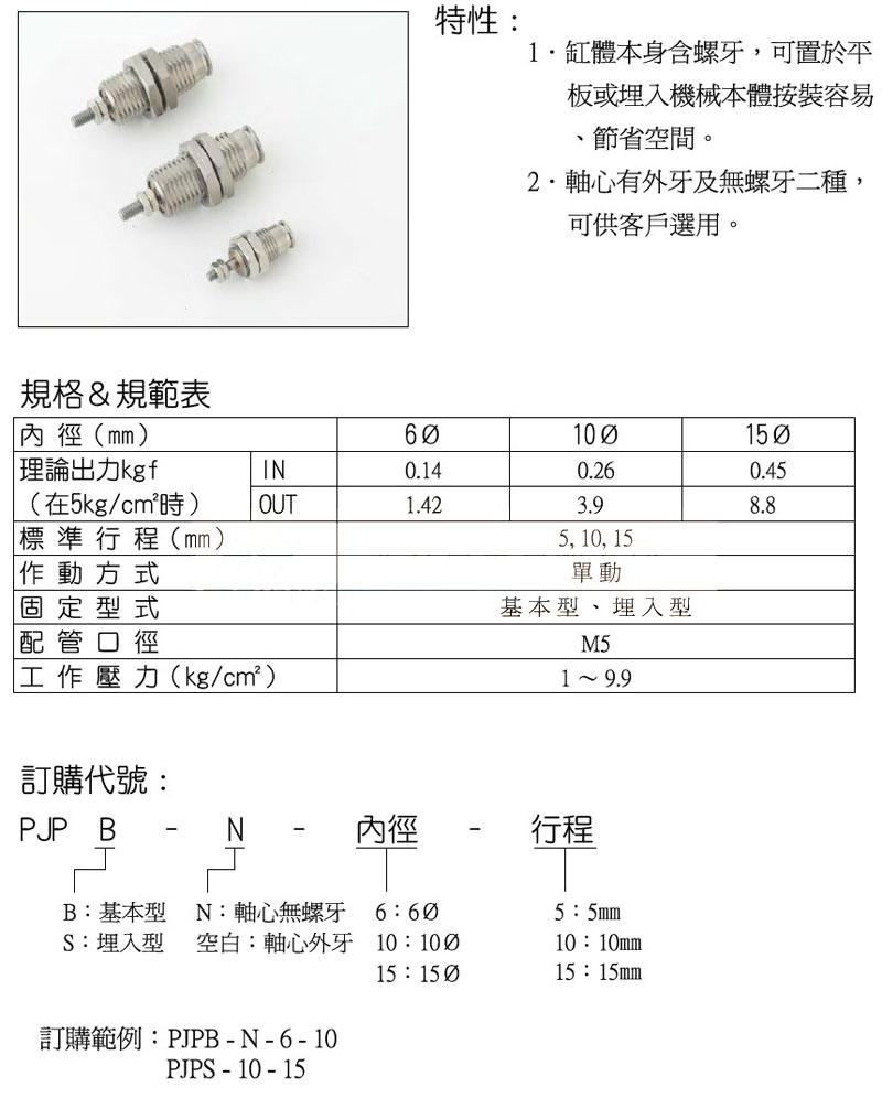 PJPB-N-6,PJPB-N-10,PJPB-15,PJPS-N-6,PJPS-10,panix單動(dòng)螺牙氣缸 |