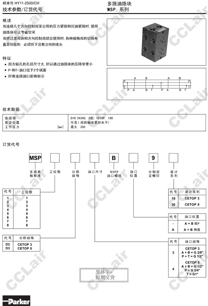 MSP1D,MSP2D,MSP3D,MSP4D,MSP5D,MSP6D,MSP7D,MSP8D,MSP1D23B910,MSP1D34B930,Parker多路油路塊