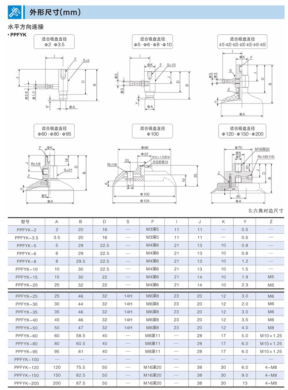 PPFTK-2,PPFTK-3.5,PPFTK-5,PPFTK-6,PPFTK-8,PPFTK-10,標準垂直/水平真空口無(wú)緩沖吸盤(pán)組