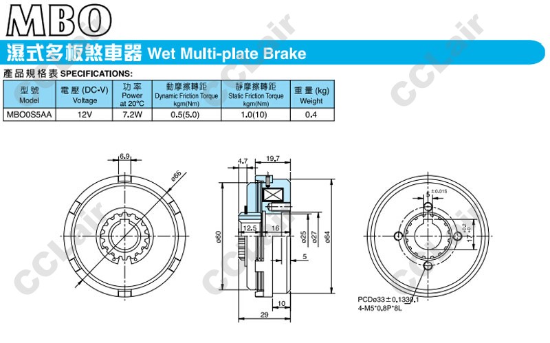 詳細信息 MBO0S5AA,濕式多板剎車(chē)器,CCLair