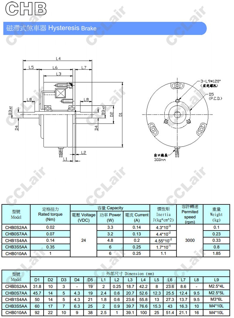 詳細信息 CHB0S2AA,CHB0S7AA,CHB1S4AA,CHB3S5AA,CHB010AA,磁滯式剎車(chē)器,CCLair