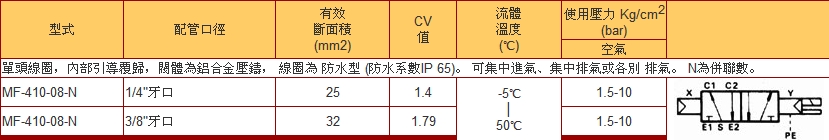 詳細信息 MF-410-08-N,電磁閥